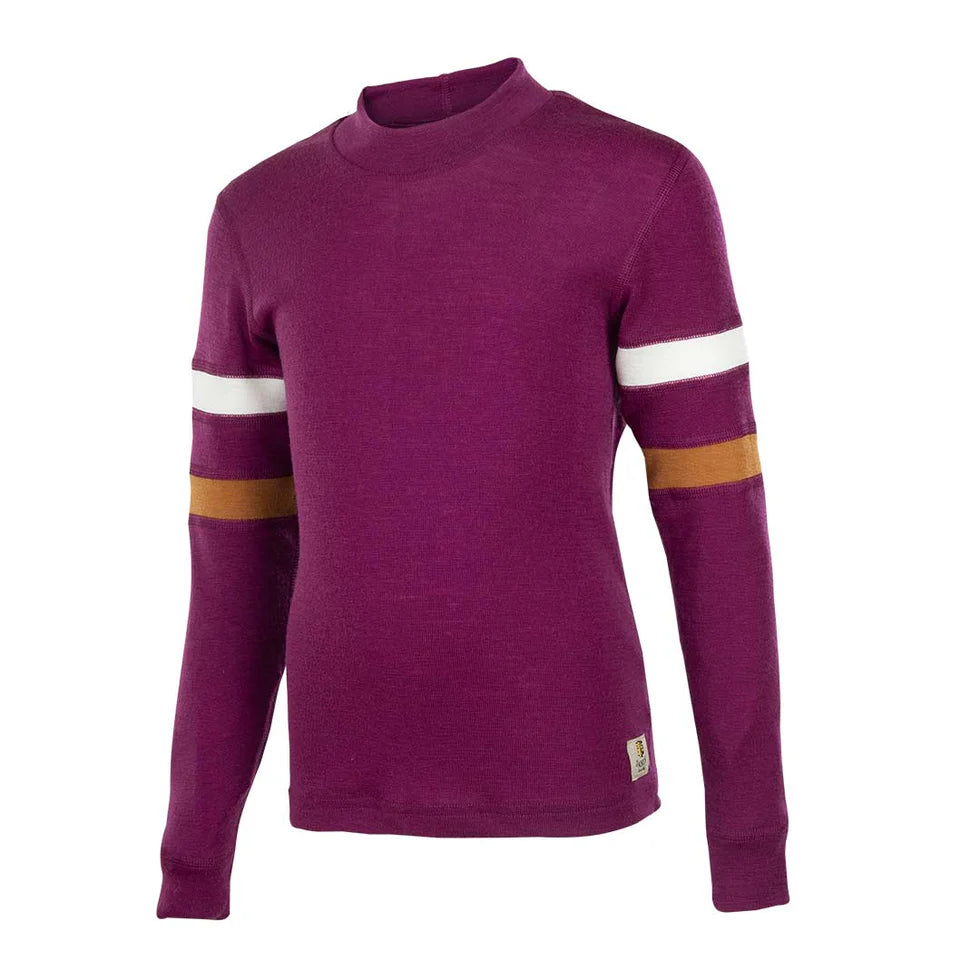 Trøye med rund hals strikket av 100 % merinoull. Trøyen har tidsriktige striper på ermene og kommer med myke, ribbestrikkete bråt på ermene for best komfort. Her får barna en ulltrøye i en medium tykk kvalitet som kan brukes hele året.